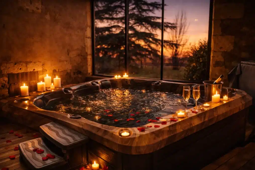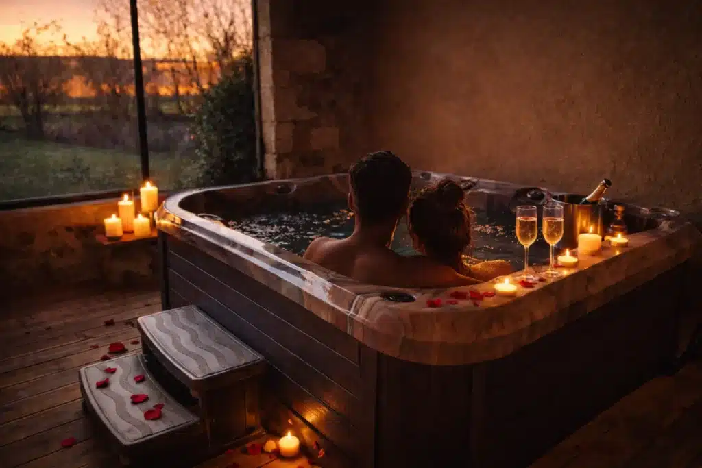 L’eau chaude vous enveloppe et masse le corps en douceur. Les tensions s’effacent, la respiration ralentit, le temps semble suspendu.